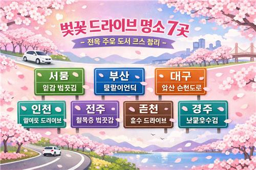 전국 주요 도시 기준으로 코스를 깔끔하게 정리했고, 총 벚꽃 드라이브 명소 7곳을 지역별로 나눠 담았습니다.