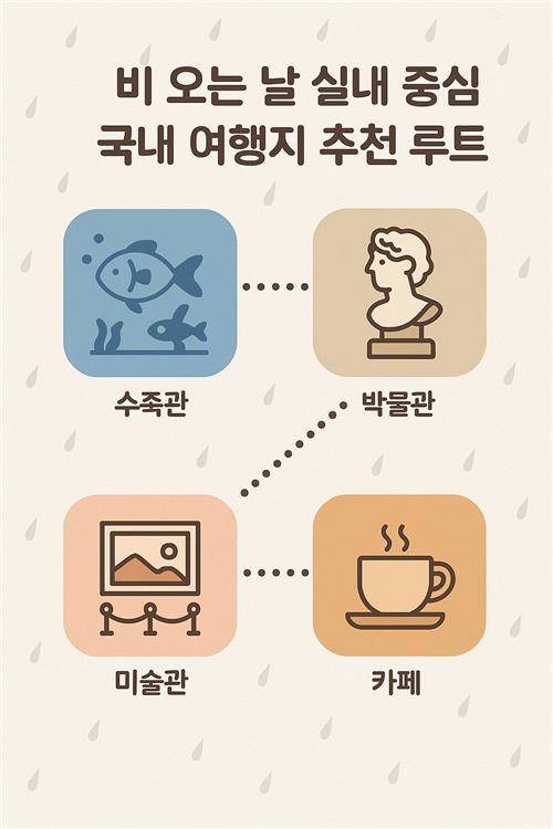 오늘은 궂은 날씨에도 쾌적하게 즐길 수 있는 실내 중심의 국내 여행 루트를 소개해 드릴게요.