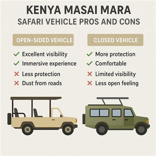 | 오픈 지프형 | 시야 최상, 동물과의 거리감이 짧게 느껴져 몰입감이 높음 | 비·먼지·바람에 노출, 기온 변화에 민감, 어린아이에게는 부담 가능 | 남아공 프라이빗 리저브와 유사한 형태지만, 마사이마라는 이동 거리와 노면 변수가 더 큰 편 |