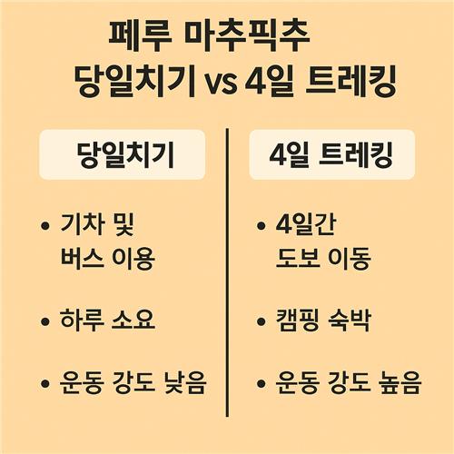 누구나 마추픽추를 가고 싶어하지만, 어떤 방식이 자신에게 잘 맞는지를 먼저 판단하는 것이 중요해요.
